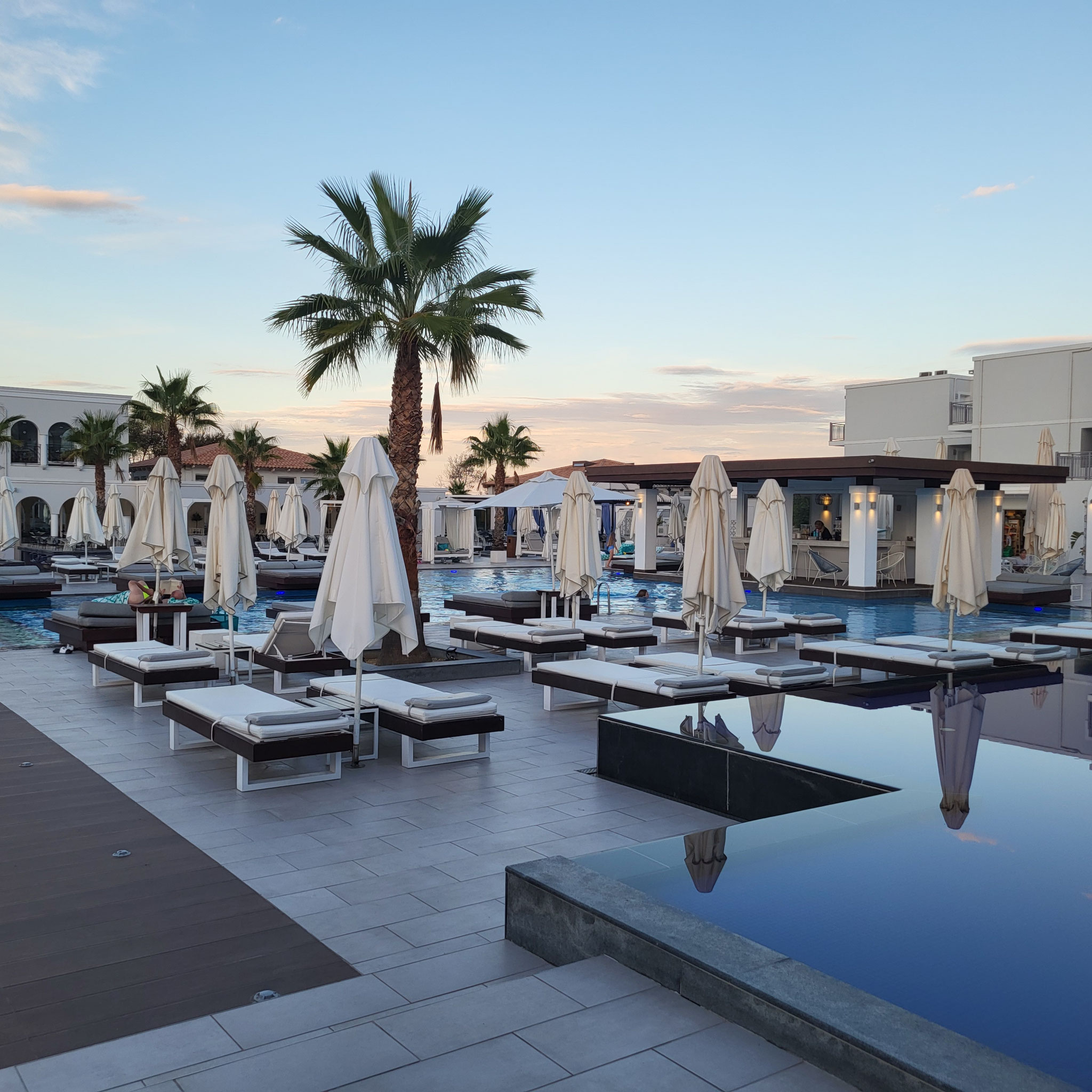 Das Anemos Luxury Grand Resort liegt an der Nordküste Kretas, nahe Georgioupolis, und überzeugt bereits beim Ankommen durch seine moderne, stilvolle Architektur. Die weitläufige Anlage ist großzügig gestaltet und wirkt trotz guter Auslastung angenehm ruhig und exklusiv.